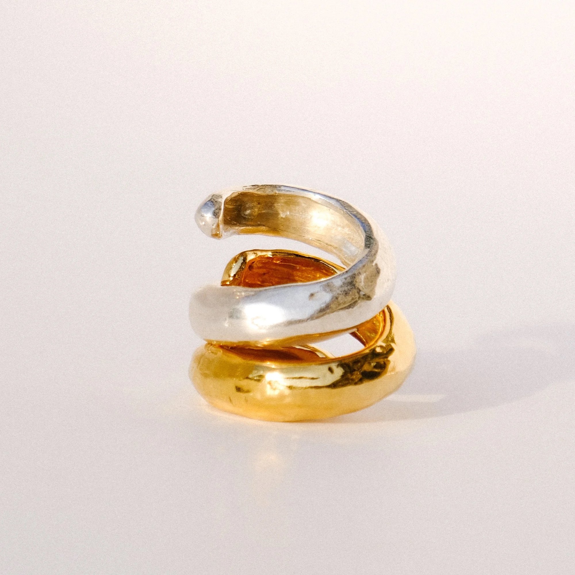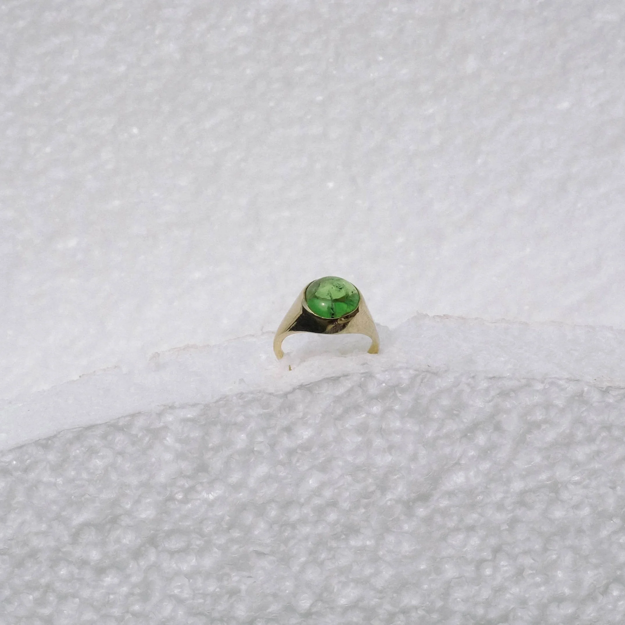 Carved by hand from wax, made of brass or silver. Custom made mother of pearl & onyx cabochon.